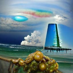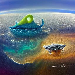 Once there is a rough first result, I often can point to objects that should be removed or can give a rough sketch (scribble) of a detail I want to be added. Like removing Bob Ross silhouette from a picture generated by ‘Happy little tree drawn by Bob Ross’ or adding a spaceship to a ‘Spaceport on top of an alien ocean’. We actually have the tools to do edits like these. It is just a matter of defining segments of the images and using one of the well-known losses.
